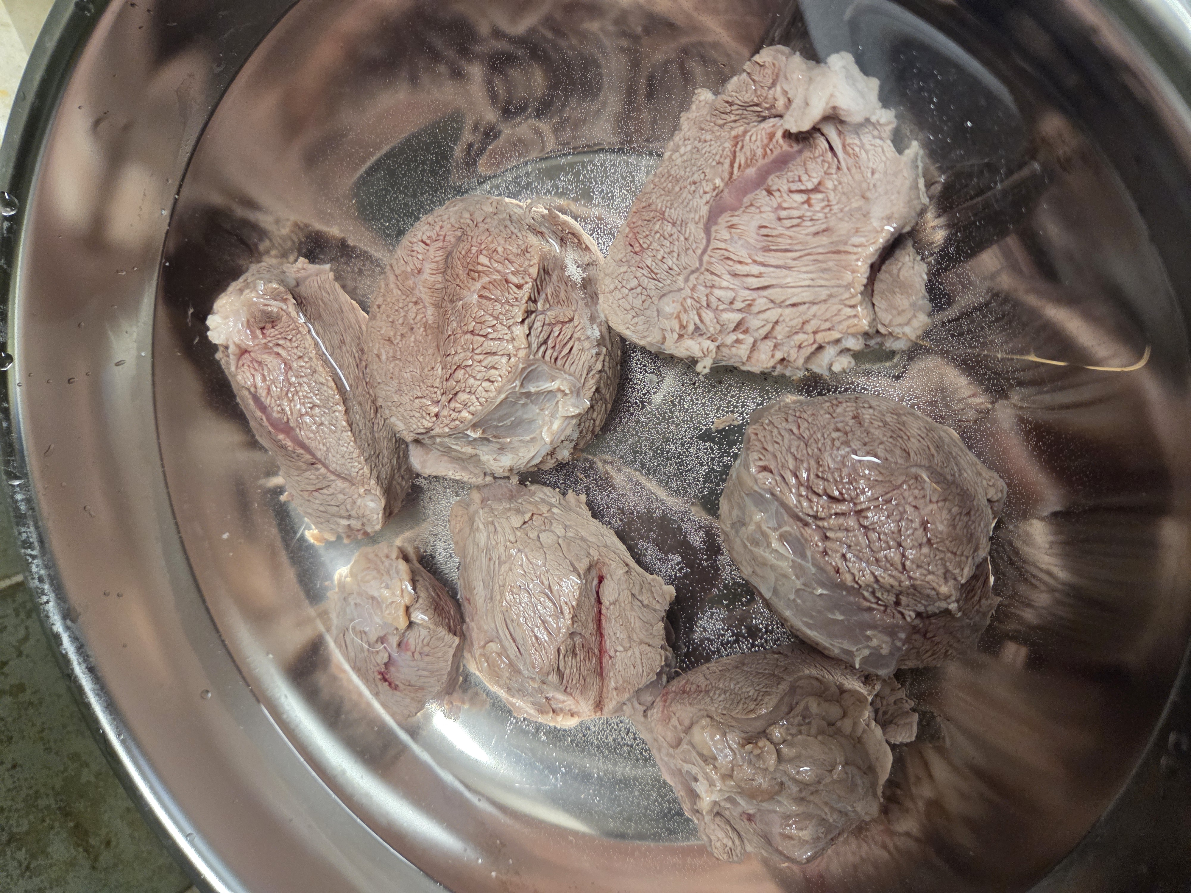 불순물이 어느 정도 떠오르면 고기를 건져 찬물에 살짝 헹궈줍니다.